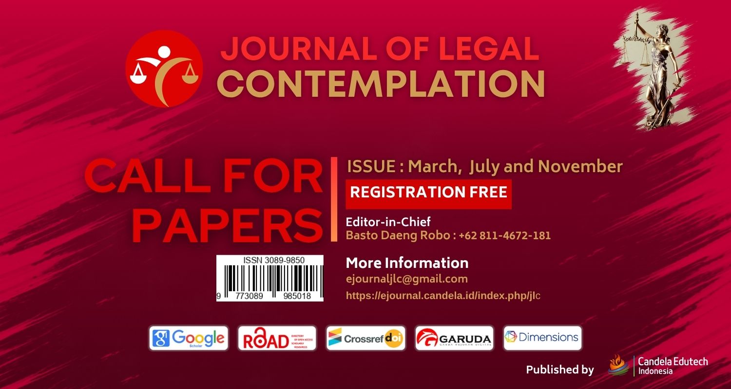 Journal of Legal Contemplation has e-ISSN 3089-9850 and p-ISSN 3089-5389. Journal of Legal Contemplation is published by Candela Edutech Indonesia. It is published three times a year on March, July, and November.